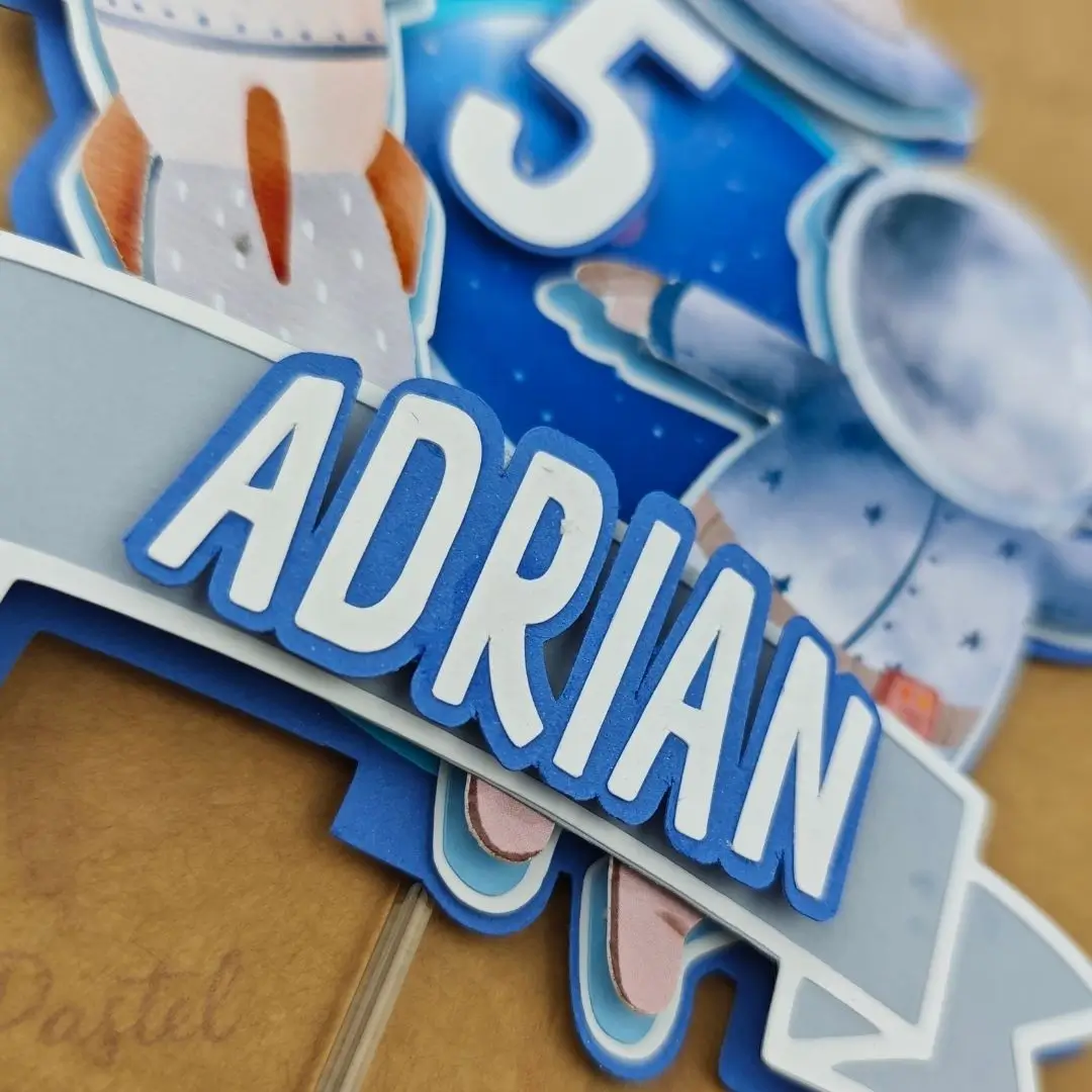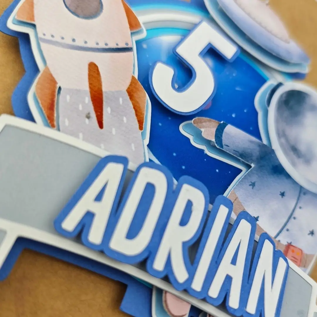 Fabricado en materiales de alta calidad, es resistente, colorido y fácil de colocar. Ideal para sorprender a los pequeños amantes del espacio y crear recuerdos inolvidables. Personalízalo con el nombre y número que desees, y haz que su tarta de cumpleaños sea la más especial del universo. 🚀👨🚀🌌