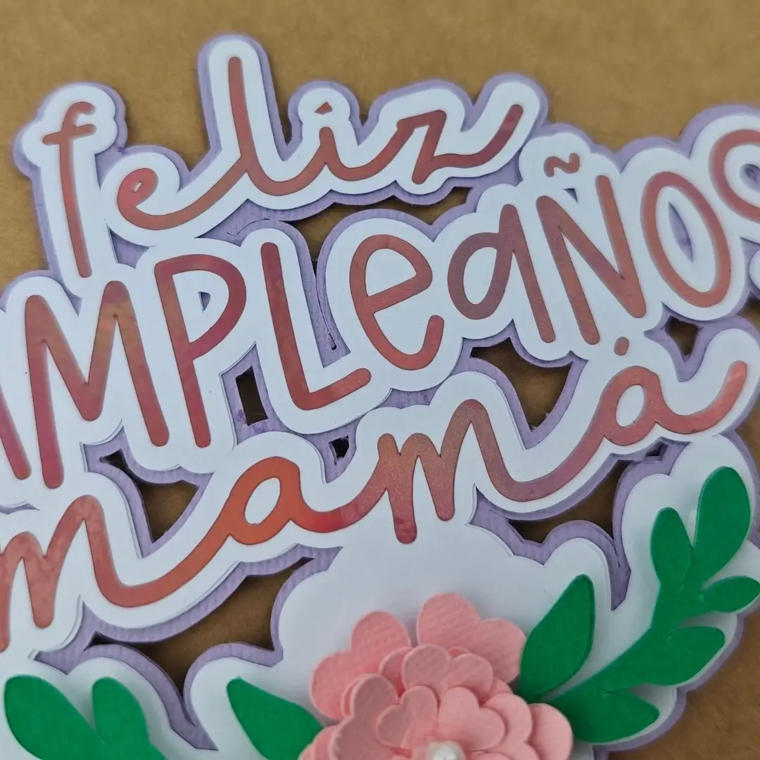 Sorprende a tu mamá en su día con un detalle tan especial como ella. Este cake topper “Feliz cumpleaños mamá” está diseñado con un estilo delicado y femenino que transmite amor y gratitud. Con tipografía en capas, hojas verdes y una flor central en tonos rosas, este topper transforma cualquier tarta en un homenaje lleno de ternura.